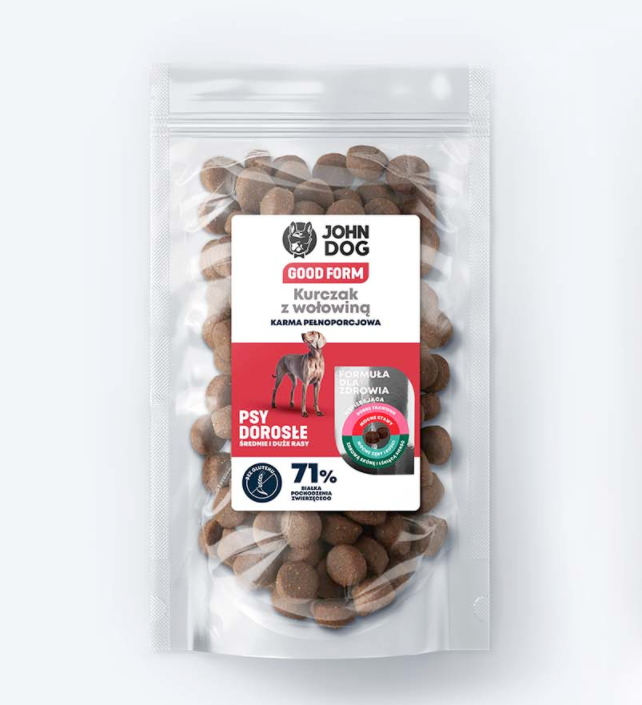 John Dog gluteenivaba koera täissööt keskmistele ja suurtele tõugudele, kana+veiseliha, NÄIDIS 120g