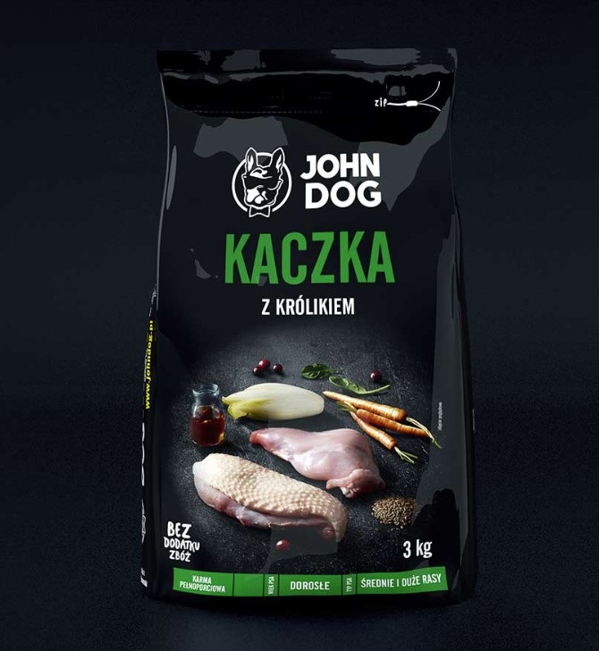 John Dog KACZKA teraviljavaba koera täissööt keskmistele ja suurtele tõugudele, part+küülik 3kg