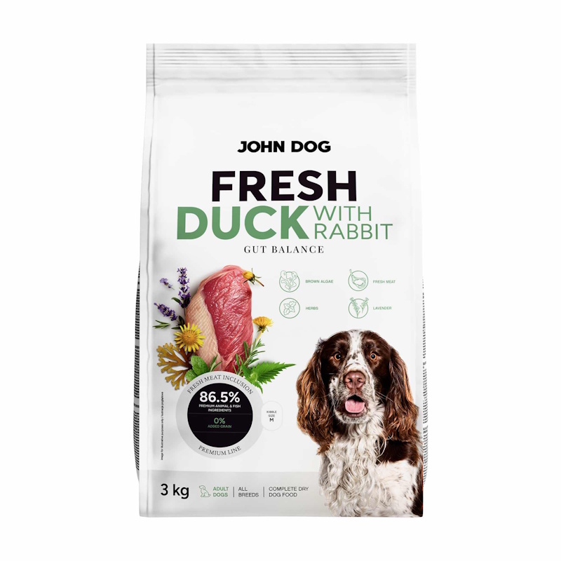 John Dog Fresh DUCK with rabbit teraviljavaba koera täissööt keskmistele ja suurtele tõugudele, part+küülik 3kg