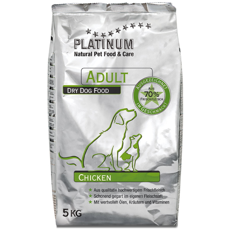 Täiskasvanud koertele mõeldud PLATINUM Adult Chicken sobib tänu oma naturaalsele, tervislikule ja kergesti seeditavale koostisele kõigile koertele, olenemata vanusest või tõust. PLATINUM Adult Chicken on välja töötatud spetsiaalselt toitumise parandamiseks ning ei sisalda lisaaineid, mis võiksid koerale kahjulikud olla. Toit sisaldab olulisi vitamiine tervise ja energia tagamiseks ning väärtuslikud ürdid soodustavad ainevahetust.