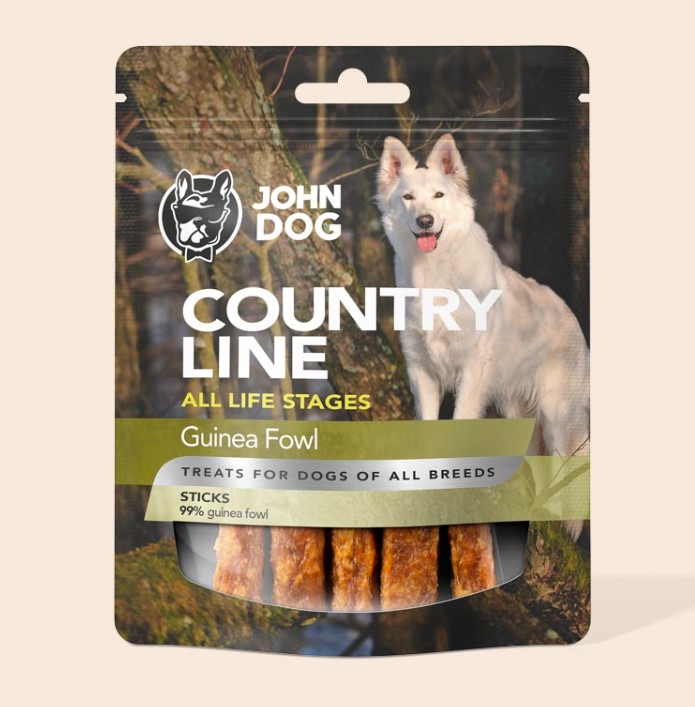 John Dog Country Line on maiuspala igat tõugu koertele. Suupiste on gluteenivaba ja hüpoallergeenne. Sellel on kõrge lihasisaldus. Maiused sobivad suurepäraselt erialaseks koolituseks või koduseks uute käskude õppimiseks.- kõrge lihasisaldus