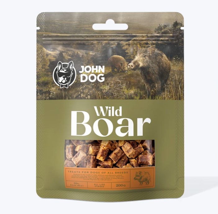 John Dog Wild Boar on maiuspala igat tõugu koertele. Seda iseloomustab kõrge lihasisaldus (60% metssealiha, 39% rupsi ja metssea rümp). Maiuse kuju sobib suurepäraselt erialaseks koolituseks või koduseks uute käskude õppimiseks.