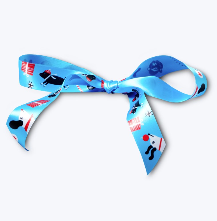 Sinine John Dog pael kingituste kaunistamiseks, ilusa jõuluteemalise mustriga.