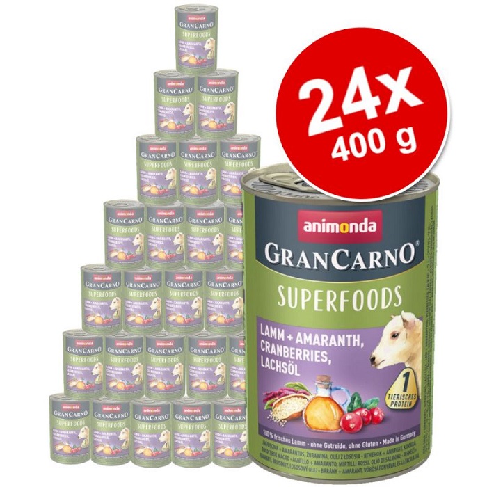Täisväärtuslik toit täiskasvanud koertele on valmistatud ainult ühte tüüpi lihast ja sisaldab seetõttu ühte loomse valgu allikat. Antud märgtoit on väärtuslike taimsete ainete, mineraalide, mikroelementide ja antioksüdantide allikas. Animonda GranCarno Adult Superfoods on teravilja- ja gluteenivaba. Animonda koeratoit on valmistatud Saksamaal rangete kvaliteedistandardite järgi.