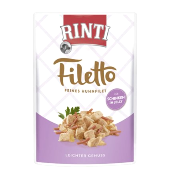 RINTI Filetto õrna kanafilee ja singiga märgtoit on valmistatud hoolikalt valitud kanafileetükkidest, mis sisaldavad rohkelt valke ja vähe rasva. Toidule on lisatud koertele vajalikke vitamiine, mineraale ja mikroelemente. Sobilik kõikidele tõugudele ja eelkõige täiskasvanud koertele.
