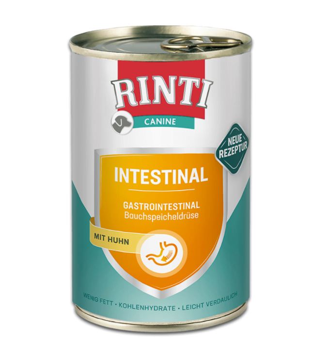 Nõrga seedesüsteemi tugevdamiseks ja soolte ägeda imendumis- düsfunktsiooni leevendamiseks. Rinti Intestinal sarja märgtoidud töötati välja seedetrakti probleemide all kannatavatele koertele. Sellel ravitoidul on madal rasvasisaldus, sisaldab kergesti seeditavaid tooraineid ning omab suurendatud elektrolüüdisisaldust.