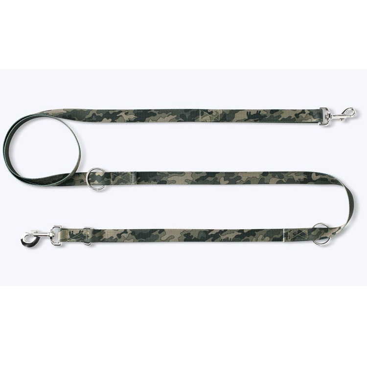 Stiilne camo mustriga jalutusrihm, valmistatud kvaliteetsest ja tugevast materjalist. Rihmal on neli erinevat pikkusastet - 120 cm, 140 cm, 175 cm ja 240 cm, tänu millele saad vajadusel hoida oma lemmikut enda lähedal või anda talle pikema rihma otsas rohkem vabadust. Pikkuse reguleerimiseks on rihma külge kinnitatud aasad, mille külge kinnitub karabiiniga ots. Rihmal on helkurpaelast John Dog logod.
