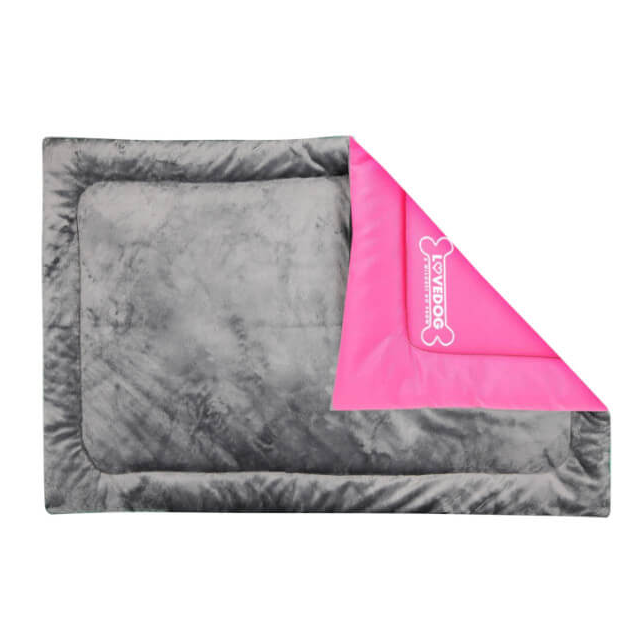 Love Dog käsitööna valminud koera pesa-matt FUR, s.M, neoonroosa/hall