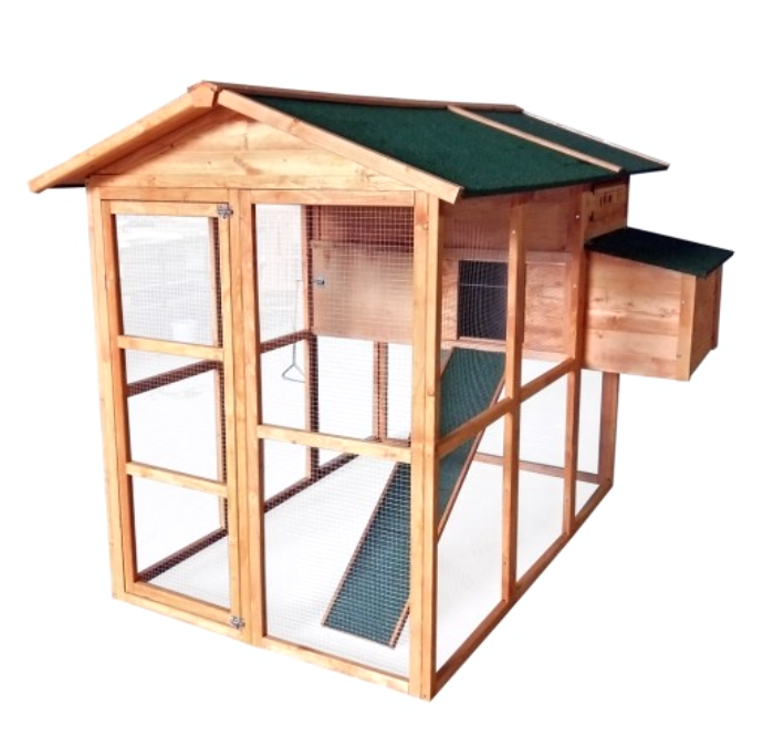 Kogu konstruktsioon on valmistatud kvaliteetsest ja ilmastikukindlast männipuidust ja galvaniseeritud võrgust. Loomadel on piisavalt ruumi värskes õhus ja katuse all. Puurid kaitsevad Teie lemmikuid selliste röövloomade eest nagu mägrad, rebased, kullid jne.