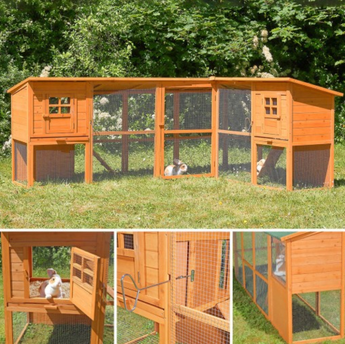 Kogu konstruktsioon on valmistatud kvaliteetsest ja ilmastikukindlast männipuidust ja galvaniseeritud võrgust. Loomadel on piisavalt ruumi värskes õhus ja katuse all. Puurid kaitsevad Teie lemmikuid selliste röövloomade eest nagu mägrad, rebased, kullid jne.