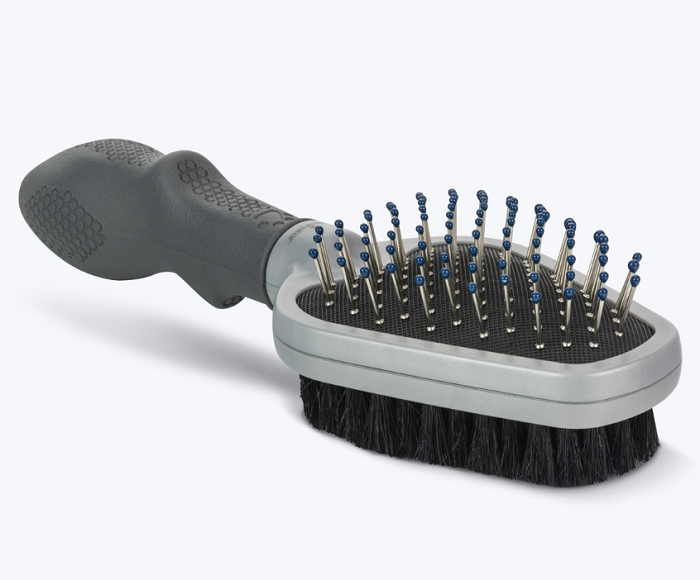 Kamm sobib igat tüüpi karvale, nii kassidele kui ka koertele. Ühelt poolt metallist piidega, mis hõlbustavad karva lahti kammimist, eemaldavad sodi ja masseerivad õrnalt lemmiklooma nahka. Kammi teine külg on kaetud looduslike harjastega, mis võimaldab karva tasandada ja anda sellele korraliku sära. Libisemiskindel käepide võimaldab head haardumist, tänu millele kahepoolne hari asub kindlalt käes ja hooldusprotsess on mugav.