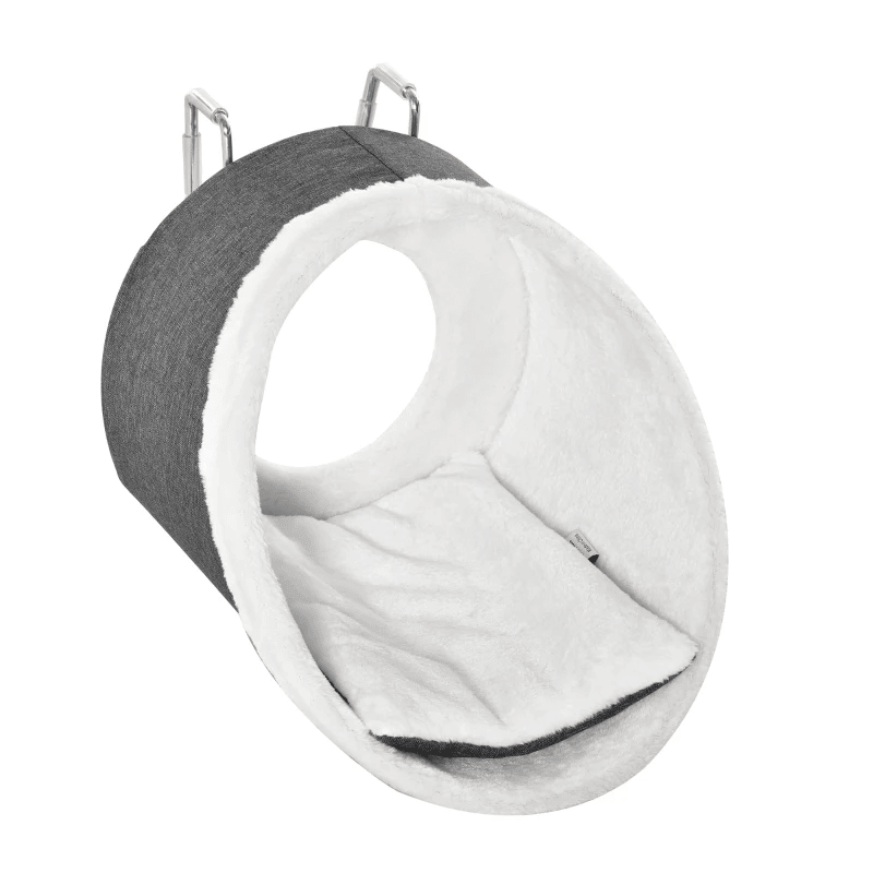 Tänu rippuvale disainile saab kassimaja paigutada sellistesse kohtadesse nagu kaminad ja küttekehad. Pange tähele, et kütteseadme temperatuur ei tohiks olla liiga kõrge. Kassikoobas on teie kassile ideaalne retriit ja sellega on kaasas pehme flanellpadi.
