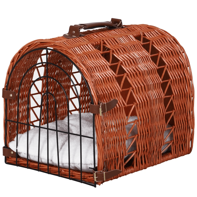 See kassikorv on valmistatud kootud, vastupidavatest, mittetoksilistest paju okstest. Pehme padi on polsterdatud palus ja puuvillaga. Nahast käepidemega varustatud kassimaja on mugav kaasas kanda ja transportida.