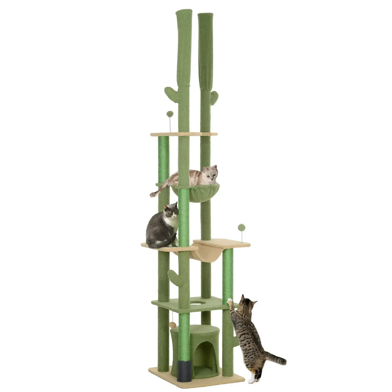 Seda kassi kraapimisposti saab reguleerida paindlikult vahemikus 225–255cm ja sellel on ruumisäästlik mitmetasandiline disain. Kahe hubase võrkkiige ja pehme kassikoopaga varustatud kraapimispuu muudab teie kodu luksuslikuks mänguparadiisiks teie karvastele sõpradele. Stabiilse aluse ja kahe laeni ulatuva ülemise toega tagab see kõrge kraapimispost ohutuse.