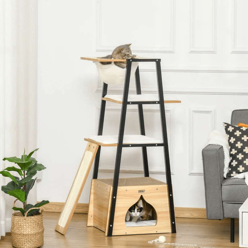Kraapimispost pakub teie kassile lõbu ja vaheldust neljal tasandil. Sealhulgas hubane võrkkiik magamiseks. Kassimaja koosneb tugevast ja ohutust konstruktsioonist, mis sobib igapäevaseks kasutamiseks.