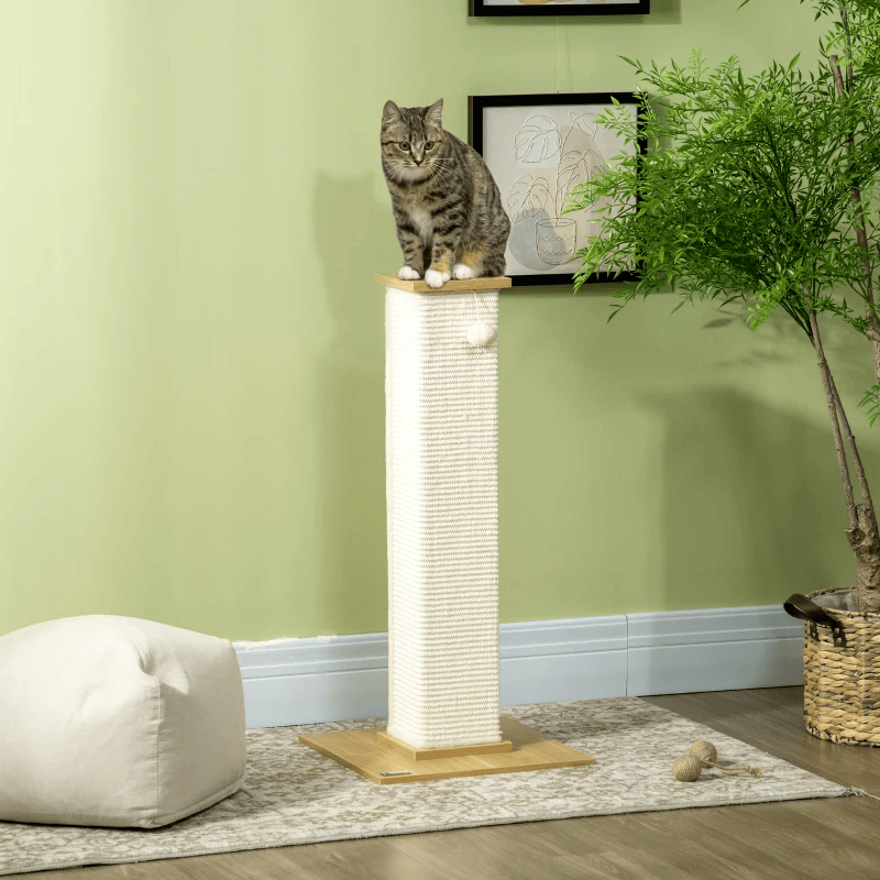 Meow neljakandiline kraapimispost mängupalliga, beež + naturaalne 38 cm x 38 cm x 80cm
