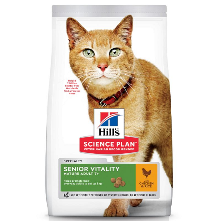 Hill's Science Plan Mature Adult Senior Vitality 7+ kuivtoit kassidele, kana ja riisiga