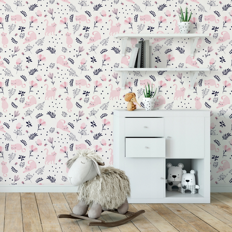 Seinatapeet PINKIEST KITTY, heleroosa-tumesinine