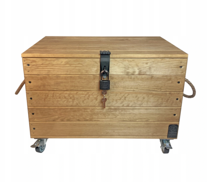 EmRa kast on valmistatud tugevast täispuidust ning on suurepärane lemmikloomatarvete hoiustamiseks. Varustatud lukustatavate ratastega ning käepidemeteks on tugev ja paks köis. Kasti sulgemiseks on lisatud tabalukk, mis annab temale omase salalaeka välimuse.