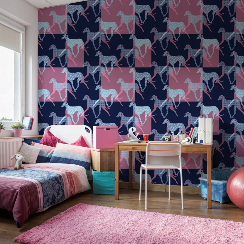 Seinatapeet KOERA SILUETT, tumesinine-roosa