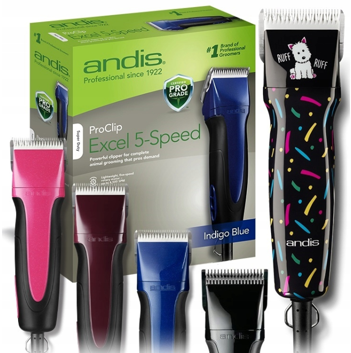Andis SMC Excel 5-Speed + on professionaalne trimmer-lõikur, sobilik kõikidele karvatüüpidele. Varustatud 5 kiiruseastmega (alates 2000 p/min kuni 3800 p/min), mis tagab masina sobivuse igale karvatüübile ja koeratõule. Aeglasemad kiirused on sobivad viimistlustöödeks ja tundlike kohtade lõikamiseks. Kiiremad kiiruseastmed on head paksema karva jaoks. Kiirust saab lihtsasti seada ja vahetada nuppudest.