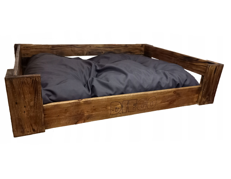 Täispuidust koeravoodi MAYA 80x160cm, tumehall + ortopeediline/antiallergiline madrats *al. 356€