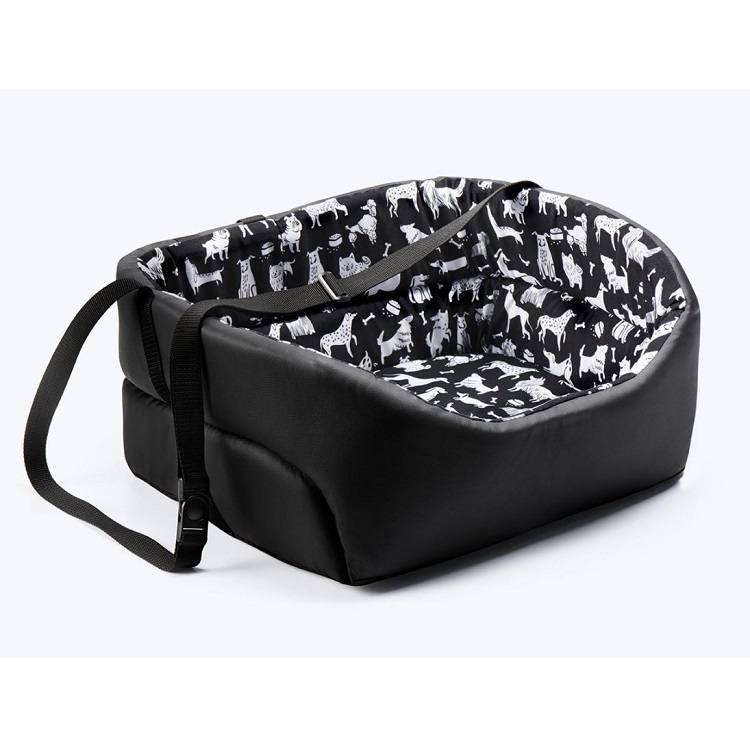 Turvapesa välimine pool on valmistatud mustast ökonahast. Sisemine osa on kaetud pehme kangaga, mida kaunistab John Dog Black Comics kollekstiooni muster. Pesa saate hõlpsalt oma auto istmele paigaldada. Kohe alguses kinnitage pesa turvavööga - toote tagumisele poolele on õmmeldud kaks rihma, millest turvavöö läbi tõmmata. Järgmisena reguleerige pesapika rihma, mis tuleks tõmmata istme peatoe taha. Pesal on karabiiniga vöö, mille saate kinnitada koera trakside või kaelarihma külge. Teie lemmikloom püsib autosõidu ajal turvaliselt pehmes pesas. Koera turvapesa on suurepärane lahendus ka teile, sest see kaitseb auto polstrit nt mustuse eest. Toode on saadaval kahes suuruses.