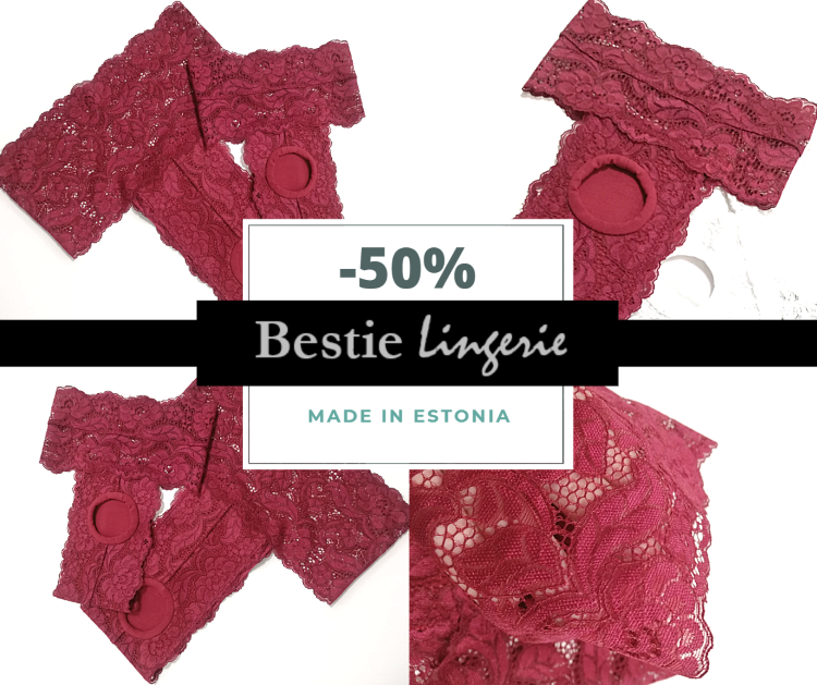 Bestie Lingerie "deBase" jooksuajapüksikud on disainitud Eestis, katsetatud aastaid Eesti koerte peal ja toodetud 100% Eesti käsitööna - iga detail valmib hoole ja armastusega. Pitsi muster ja laius võib pildil olevast erineda.