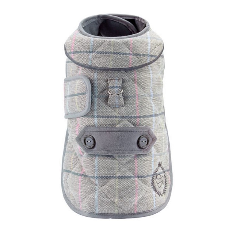 on ideaalne jahedateks päevadeks ja õhtuteks. See peab kerget vihma ja tuult ning hoiab Sinu lemmiku soojas. Välimine pool on valmistatud kvaliteetsest trendika ruudumustriga kangast, sisemine pool aga pehmest sametisestkangast. Seljaosal on elegatnsed pruunid nööbid. Jakil on pisike krae. Lisaks kaunistab seda Chloe's Home logo tikand. Jaki kinnitus on takjapaelaga, mis annab ka reguleerimise võimaluse - saate ise sättida, kui tugevalt keha ümber jakk kinnitada. Seljaosal on rõngas jalutusrihma jaoks.