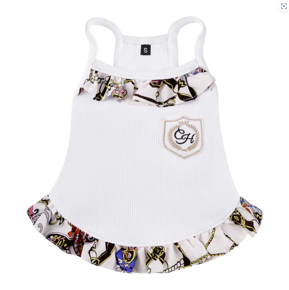 A- kujuline kleit on valmistatud puuvillasest kangast, mis sisaldab elastaani - elastaan annab kleidile hea venivuse ja istuvuse. Kleidil on peenikesed õlapaelad, mis tagab mugavuse. Elegantsust lisavad alläärel ja ülaosas olevad satsid ning Chloe's Home tikand.