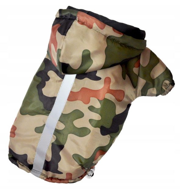 Jope, mis kaitseb Sinu lemmikut vihma, lume, külma, niiskuse ja tuule eest. Pealmne pool on vihmakindlast materjalist, sisemine pool tepitud vatiin voodriga. Kinniseks trukid, alläär reguleeritav kummi ja stopperitega. Lihtne ja mugav selga panna. Seljaosal ja varrukatel on helkurpael, mis muudab Sinu lemmiku pimedas kergesti nähtavaks. Jopel on kapuuts.
