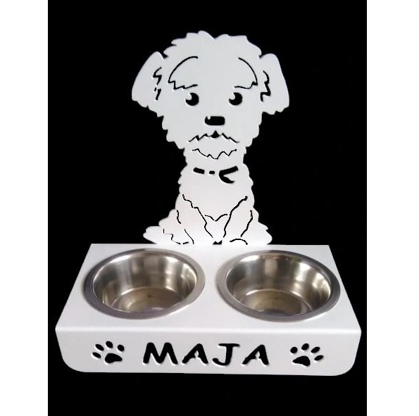 MET toidukausialus 30x16x35 cm +kausid 2x0.45l, Malta bichon, personaalse nimega, valge