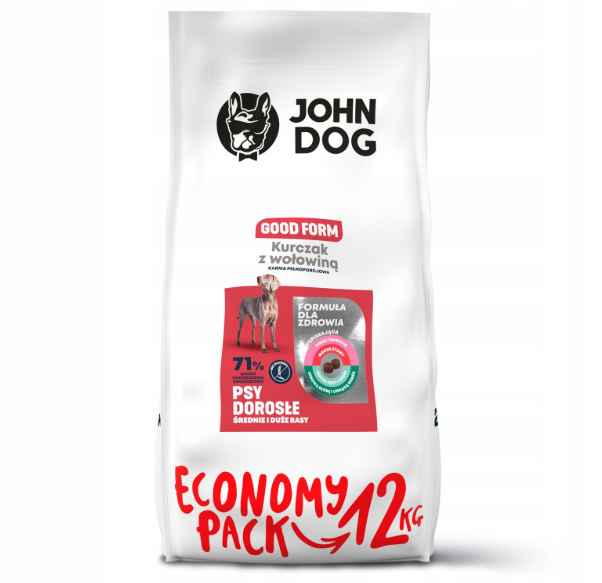 John Dog gluteenivaba koera täissööt keskmistele ja suurtele tõugudele, kana+veiseliha 12kg