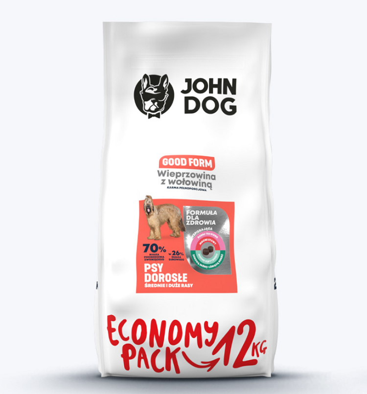 John Dog gluteenivaba koera täissööt keskmistele ja suurtele tõugudele, sealiha+veiseliha+riis, 12kg