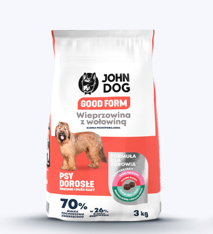 John Dog gluteenivaba koera täissööt keskmistele ja suurtele tõugudele, sealiha+veiseliha+riis, 3kg