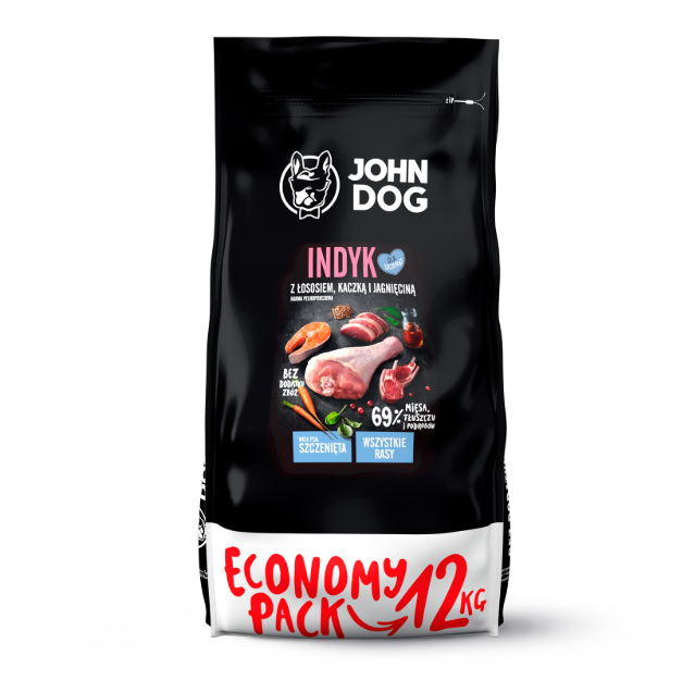 John Dog INDYK teraviljavaba koera täissööt kutsikatele, kalkun+lõhe+talleliha+ part, 12kg