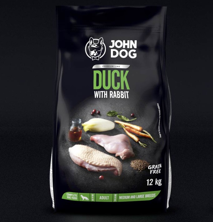 John Dog KACZKA teraviljavaba koera täissööt keskmistele ja suurtele tõugudele, part+küülik 12kg