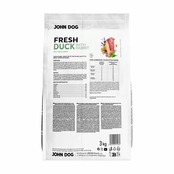 John Dog Fresh DUCK with rabbit teraviljavaba koera täissööt keskmistele ja suurtele tõugudele, part+küülik 3kg