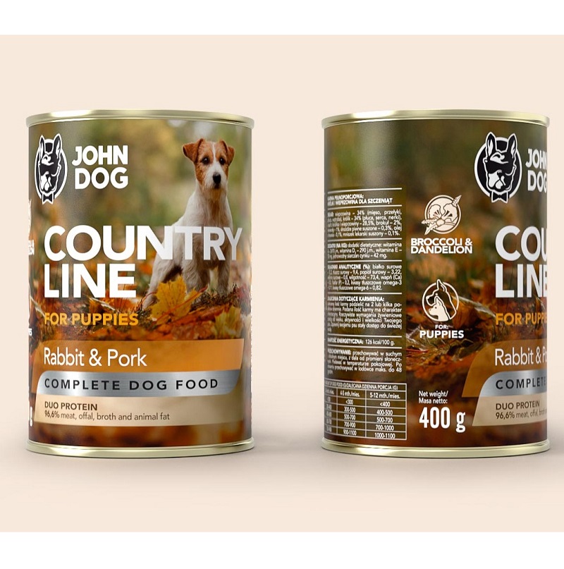 John Dog teraviljavaba märgtoit COUNTRY LINE kutsikatele, küüliku- ja sealiha
