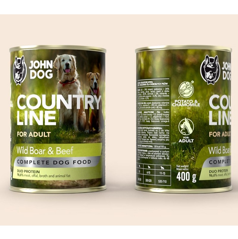 John Dog teraviljavaba märgtoit COUNTRY LINE täiskasvanud koertele, metssea- ja veiseliha