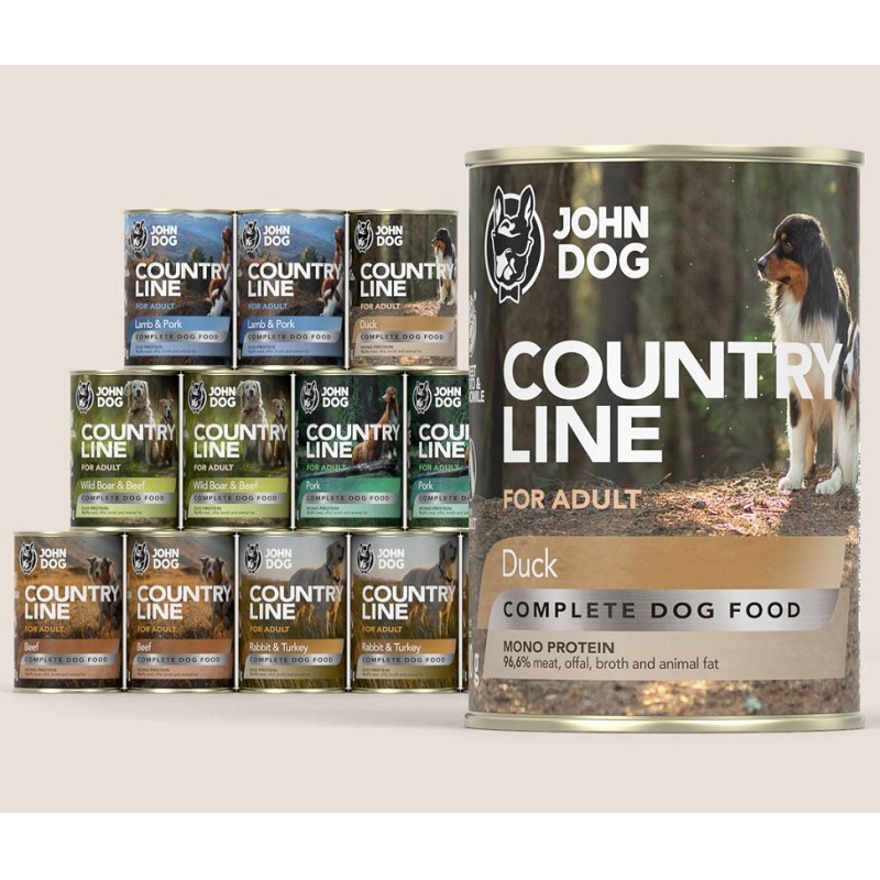 John Dog COUNTRY LINE täiskasvanud koerte märgtoidu komplekt, kuue erineva maitsega: