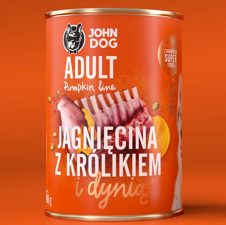 John Dog teraviljavaba märgtoit PUMPKIN LINE täiskasvanud koertele, küüliku- ja lambaliha + kõrvits