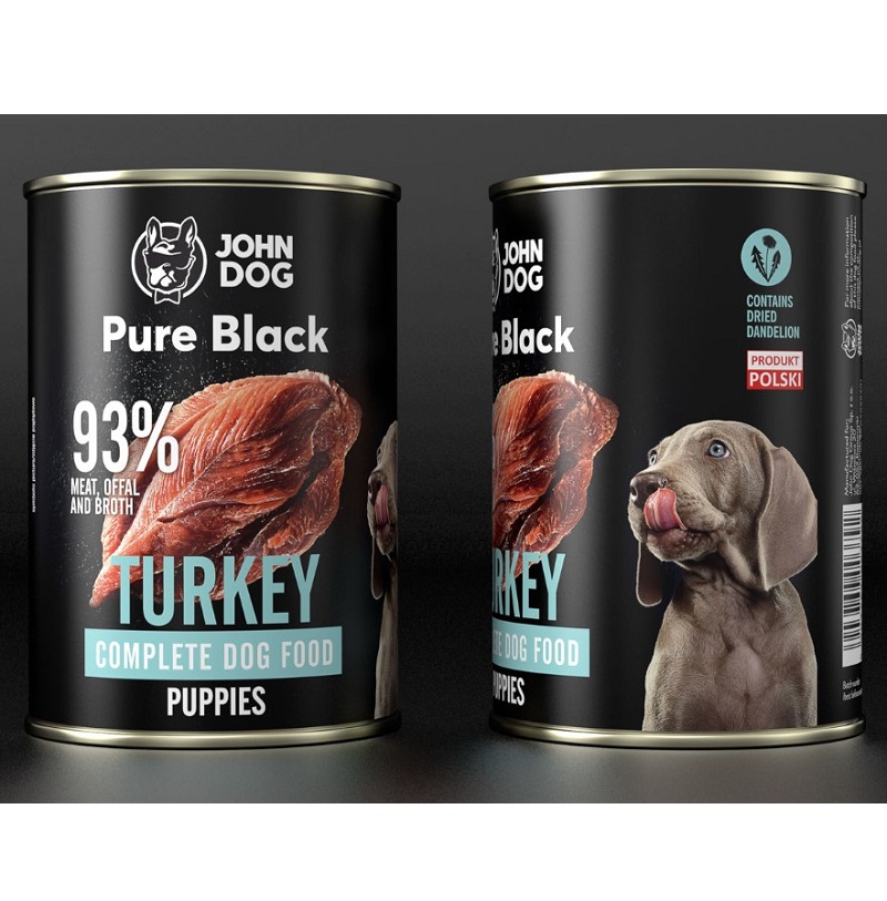 John Dog teraviljavaba märgtoit PURE BLACK kutsikatele, kalkuniliha