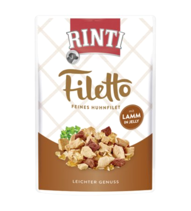 RINTI Filetto õrna kanafilee ja lambalihaga märgtoit on valmistatud hoolikalt valitud kanafileetükkidest, mis sisaldavad rohkelt valke ja vähe rasva. Toidule on lisatud koertele vajalikke vitamiine, mineraale ja mikroelemente. Sobilik kõikidele tõugudele ja eelkõige täiskasvanud koertele.