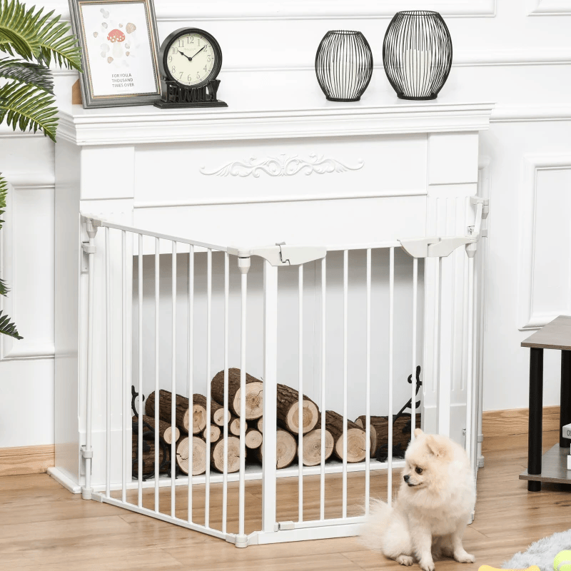 Turvaväravat saab kasutada lemmiklooma valvurina lemmiklooma kaitsmiseks, turvaväravana treppide jaoks, turvaaiana pliidi, jõulupuu jms ümbritsemiseks või tõkkena teie ruumi jagamiseks. Paindlik kuju ja kaasasolev seinakinnitus täidavad teie individuaalsed soovid. See uksevõre on valmistatud vastupidavast metallraamist, millel on pulbervärv, et tagada tugevus ja hea kuumakindlus. Kokkupandav disain muudab selle trepivärava hoiustamise ja transportimise lihtsaks, kui seda parasjagu ei kasutata.