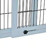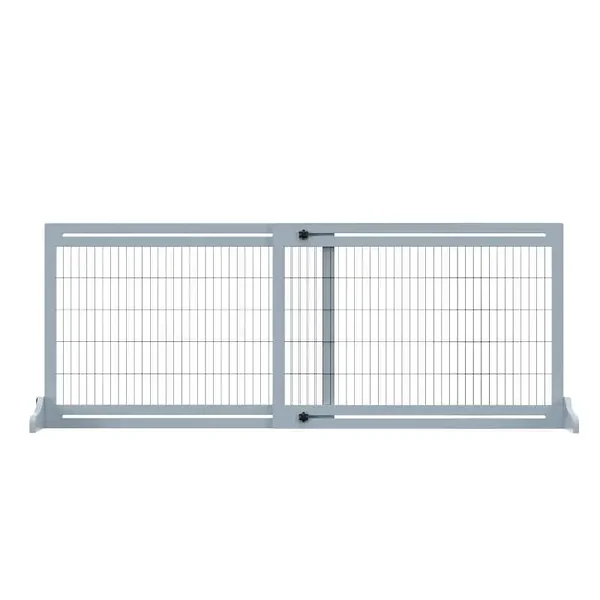 Männipuidust valmistatud ja tugevate metallvarraste võrega varustatud eraldiseisev turvavärav on vastupidav konstruktsioon, mis peab vaevata vastu igapäevase kasutamise nõudmistele.