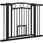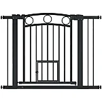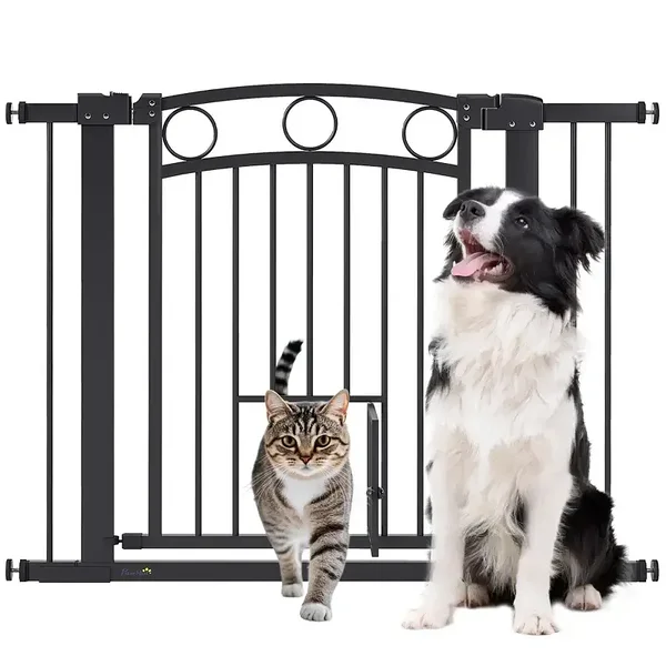 Kõrge turvavärava värav pakub kohandatavat laiust 76–104 cm ja kõrgust 77 cm, mis sobib ideaalselt enamiku treppide ja uste jaoks. Turvavärava saab sõltuvalt teie individuaalsetest vajadustest kinnitada kas survega, et vältida kahjustusi, või puurida seina kindlama lahenduse saamiseks. Kahekordse lukustussüsteemiga varustatud turvavärav võimaldab lihtsat juhtimist ühe käega, jääb kindlalt suletuks ja seda saab avada mõlemalt poolt. Sisseehitatud kassiuksega, ideaalne majapidamistele, kus on kassid ja koerad.