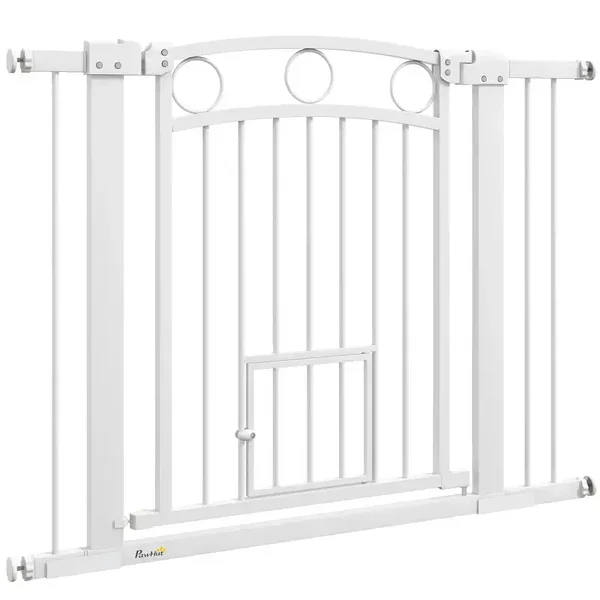 See kvaliteetne turvavärav on 76–104 cm lai ja 106 cm kõrge, ideaalne enamiku treppide ja uste jaoks. Kahekordse lukustussüsteemiga varustatud turvaväravat on lihtne ühe käega juhtida ja see jääb kindlalt suletuks. Integreeritud kassiuksega turvavärav sobib ideaalselt kasside ja koertega majapidamistesse.